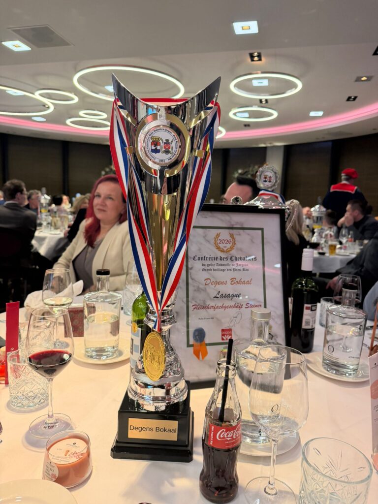 Besonders bemerkenswert: die prämierte Lasagne. In Kategorie J3, den erhitzten Fertigprodukten, belegten die Sollenauer nicht nur den Goldrang – sie wurden von der internationalen Jury als bestes Produkt der gesamten Kategorie ausgezeichnet. Der Degens Bokaal, ein Sonderpreis der Confrérie für außergewöhnliche Einzelprodukte, ging damit an einen österreichischen Handwerksbetrieb.