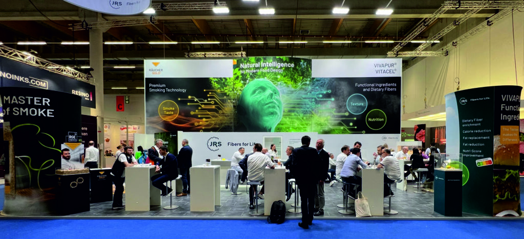 Führend in der JRS Pflanzenfaser-Technologie präsentierte JRS (J. Rettenmaier & Söhne) auch in diesem Jahr auf der IFFA ein breites Spektrum innovativer Lösungen für die moderne Fleischin- dustrie. Der natürliche Weg zur Optimierung von Produkteigenschaf- ten und Prozessen in den Bereichen Ernährung, Textur und Rauchgeschmack stieß sowohl bei Fleisch-Enthusiasten als auch modernen Food-Designern auf großes Interesse! „Sicher, effizient und natürlich räuchern mit der Sortenvielfalt vom Master of Smoke“, war die Kern- botschaft an die internationale Interessenten am JRS Stand. Mit viel positiver Resonanz wurde die neue, große Sortenvielfalt wahrge- nommen und die Unterschiede in Geschmacks- und Farbgebung und deren Einsatzmöglichkeiten zur Produktion von Spezialitäten und Differenzierung von Standardprodukten erörtert.