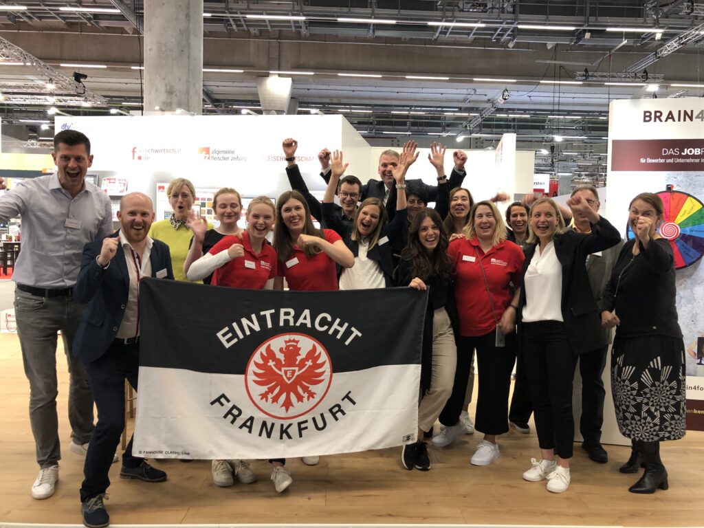 Matchday an Tag fünf der IFFA: Der gesamte Verlagsbereich der Agrar-, Back- und Fleischmedien der dfv Mediengruppe rund um Christian Schnücke (links).© Beigestellt