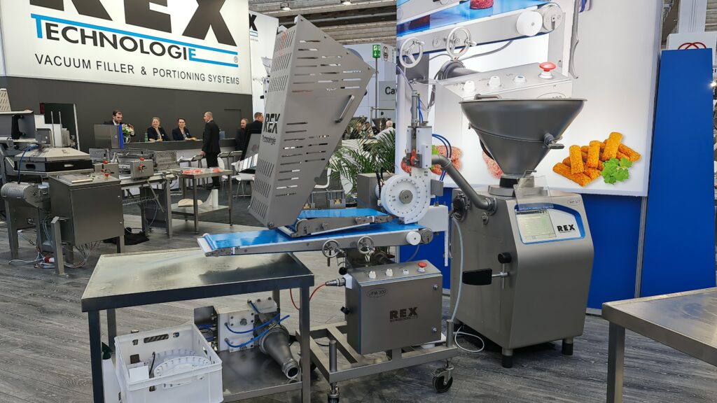 REX-Technologie präsentierte Vakuumfüllmaschinen für Einsteiger in die Vakuumfülltechnik bis hin zum industriellen Einsatz. Weiters die Hackfleischportionierlinie, Kalibrier-, Aufhänge- und Schneidesysteme und Wursttrennlinien und universelle Formmaschinen. Die vielen Besucher konnten sich vor Ort davon überzeugen, wie flexibel REX-Maschinen mit den diversen Füllmassen verschie- denste Produkte produzieren. Auch das Thema „Food Trends“ präsentierte REX-Technologie – eine Vielzahl an Lösungen für die Produktion von Lebensmitteln aus pflanzlichen Inhaltsstoffen. © Beigestellt