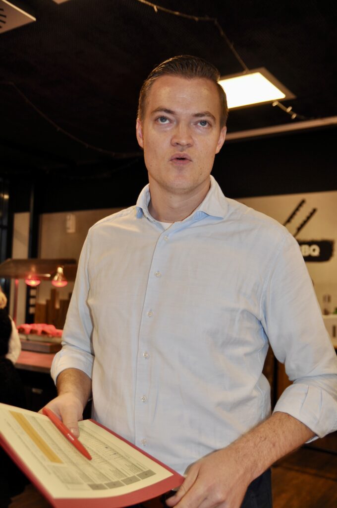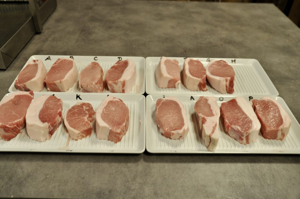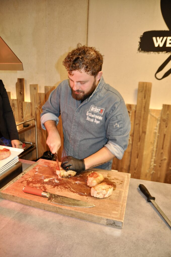15 Kostproben, jeweils von der Karreerose vom kurzen Karree, wurden vom Weber- Grillmeister und Fleisch-Diplomsommelier Patrick Bayer perfekt fu?r die Verkostung zubereitet. Die Karreerosen wurden mit leichtem Fettrand und ungewu?rzt auf eine Kerntemperatur von 62 °C gegrillt und waren rund vier Zentimeter dick.