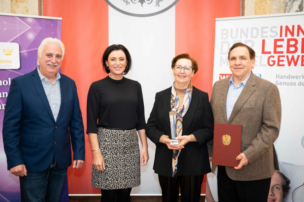 Den Besten der Besten wurde nun am 9. November 2021 eine besondere Ehre zuteil: Sie erhielten im Marmorsaal des Bundesministeriums für Landwirtschaft, Regionen und Tourismus von Bundesministerin Elisabeth Köstinger die Ehrenpreise überreicht. Um einen Ehrenpreis zu erwerben, muss ein Betrieb die ganze Breite des handwerklichen Könnens unter Beweis stellen: Es gilt, in allen Kategorien Goldauszeichnungen zu holen.