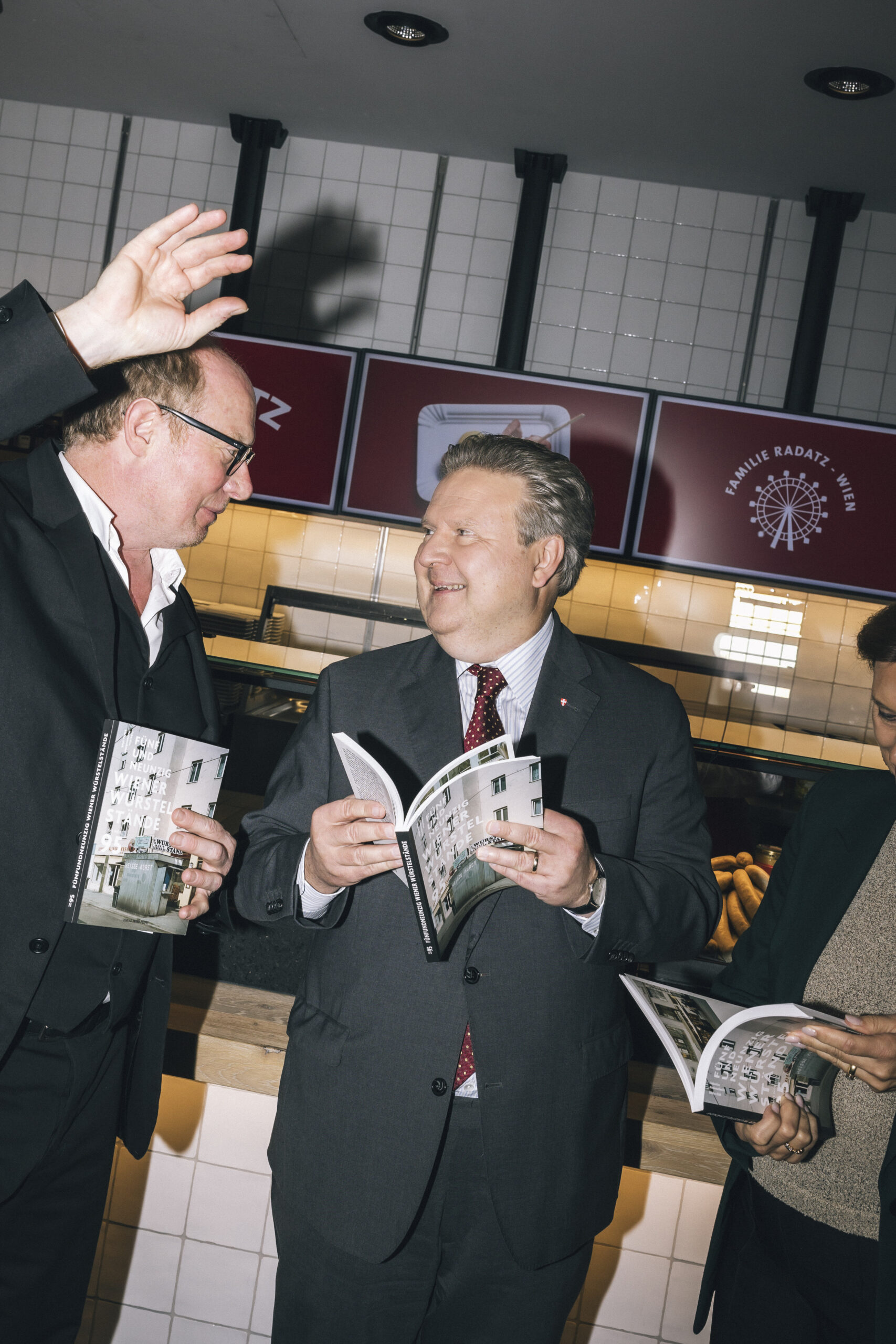 Viel wienerischer kann ein Event nicht werden: Kommerzialrätinnen und Designer, Schauspieler und Architekten, dazwischen Gratis-Blitzer mit Presseausweisen aus dem Jahr 1983. Hanno Pöschl, Lili Hollein und Gregor Eichinger kamen zur Buchpräsentation, „El Gaucho“-Macher Michael Grossauer ebenso. Sie trafen beim Radatz am Karmelitermarkt auf Käse-Guru Christian Pöhl, Würstel-Platzhirsch Josef Bitzinger und Innungsmeister Horst Stierschneider sowie (Noch-)Tourismus-Staatssekretärin Susanne Kraus-Winkler. Die vereinigende Kraft dahinter war der Würstelstand. Ihm widmete sich Stefan Oläh in seinem Bildband „Fünfundneunzig Wiener Würstelstände“. Und das zog auch Bürgermeister Michael Ludwig in den zweiten Bezirk, denn „der Würstelstand gehört zu Wien wie der Heurige und das Kaffeehaus“. Als Orte der Begegnung werde bei Würsteln und Gebäck „geredet, gelacht und das Leben geteilt“, sah Ludwig die Standln als soziale Knotenpunkte, die die Gemeinschaft stärken und das Miteinander fördern“.