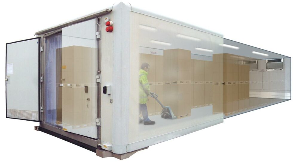 Somit sind alle Superboxen für die Aufstellung im Freien konzipiert und sind regen-, wind- und schneelastsicher. Wichtige Ausstattungsmerkmale sind ein flacher und isolierter Kunststouffboden mit Anti-Rutsch-Struktur, Sicherheitskühlraumtür mit Innenentriegelung und Türrahmenheizung, Streifenvorhang, heller Innenbeleuchtung, Notbeleuchtung und Temperaturdatenlogger.