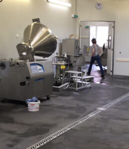 In der Fleischerei verlegte S+K insgesamt 920 m2 Monile® in der Produktion, der Verarbeitung und im Kühlraum als hochbelastbaren Belag enorm langlebig, robust, dauerhaft rutschfest und dampf- diffusionsoffen und somit hervorragend geeignet für Nassbetriebe. Monile® Böden sind kunstharzmodifizierte Systeme, die aus einer Polyacryl-Copolymer-Emulsion, einem modifiziertem hydraulischen Bindemittel und Quarzfüllstoffen mit optimierter Korngrößenverteilung bestehen. Der Monile®-Spezialboden wurde besonders für die Lebensmittelindustrie entwickelt. Der Belag wird seit über 55 Jahren erfolgreich in der Fleischindustrie eingesetzt und eignet sich besonders für Industriebodenflächen, die dauerhaft nass sind und auch hochbelastbar und dauerhaft rutschsicher sein müssen.