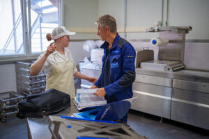 OK-Paneele ist kein Produzent, sondern hat sich auf die professionelle Montage von Paneelen in Nahrungsmittel verarbeitenden Betrieben spezialisiert und verwendet die für den jeweiligen Einsatzzweck geforderten und geeigneten Materialien, um den Kundenwünschen und technischen Anforderungen zu entsprechen. Bei der Fleischerei Böck wurden in der ersten Bauphase die Wandverkleidungen mit großformatigen Glasbord®-GFK-Paneelen verkleidet. Diese Oberfläche ist schlag- und kratzunempfindlich, weitgehend säure- und laugenstabil und lässt sich durch die mikroskopisch porenfreie Oberfläche einfach reinigen. Des Weiteren wurden Kühlräume und Trennwände aus Sandwichpaneelen errichtet. Auch Pendeltüren, Betriebs- und Kühlraumtüren wurden montiert. Um in den Kühlräumen und in den stark befahrbaren Bereichen die Wände zu schützen, wurde ein massiver CNS-Sockelanfahrschutz montiert. In der zweiten Bauphase wurden im Altbestand teilweise die Wände mit Glasbord®-GFK Direktverklebung saniert.
