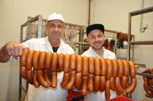 Was dem Trio besonders wichtig war: Platz fu?r Parkpla?tze war ebenso genug vorhanden wie fu?r die Errichtung einer handwerklichen Fleischerei samt Fachgescha?ft. Am 1. Ma?rz 2021 war es nach einer rund zwo?lfmonatigen Bauzeit schließlich so weit, der neue Betrieb und das neue Fachgescha?ft wurde ero?ffnet (Fleisch & Co hat berichtet). Die Produktion weist eine Betriebsfla?che von 450 Quadratmetern auf, dazu kommen 100 Quadratmeter Gescha?ft und, ganz wichtig, 25 Parkpla?tze vor und neben dem Geba?ude.