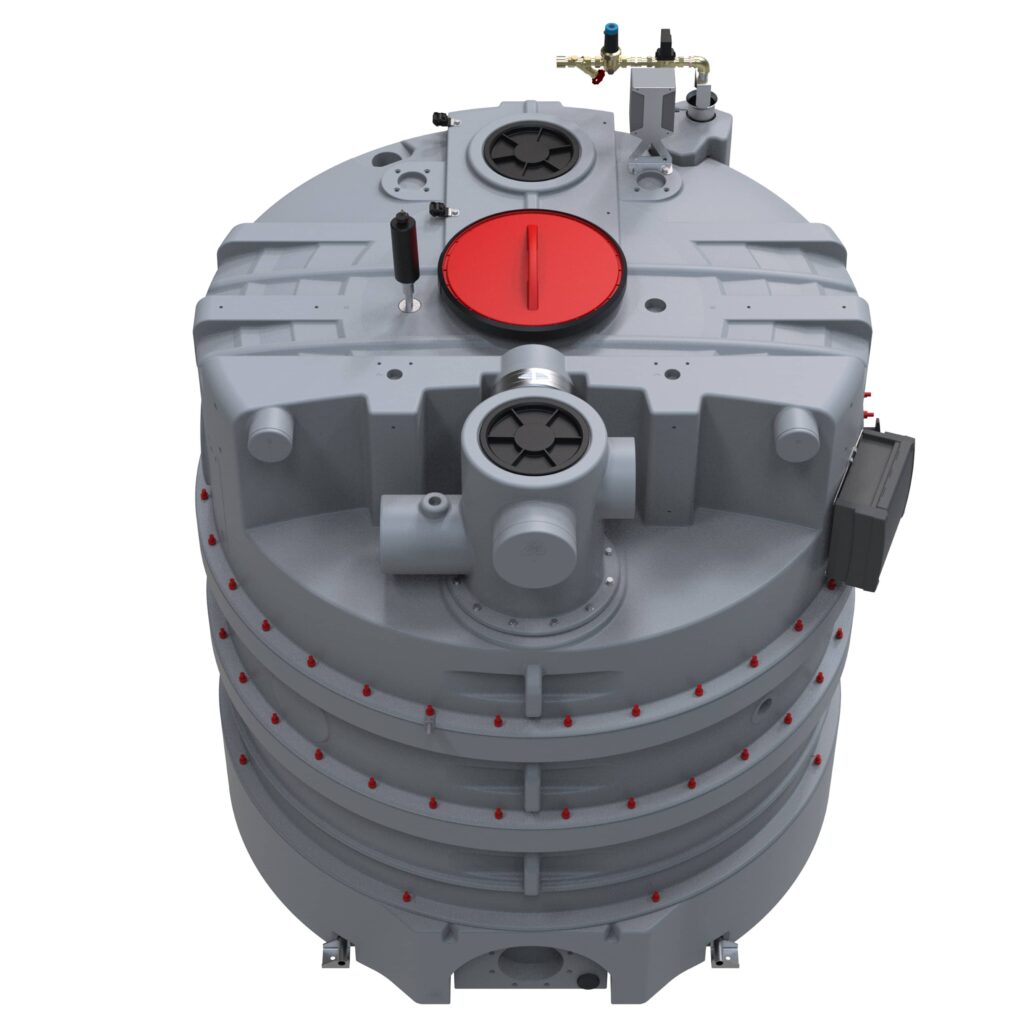 Die runde, formbeständige Gestaltung sorgt für höchste Stabilität im Dauerbetrieb. Die Vorteile der Segmentbauweise zeigen sich nicht nur in Bausituationen mit beengten Einbringmöglichkeiten oder bei Zugangswegen mit rechtem Winkel, sondern auch bei Umrüstungen infolge Betriebsveränderungen oder neuer Vorgaben: Der Abscheider lässt sich einfach durch weitere Segmente ergänzen, die Anschlüsse können ganz unkompliziert neu angeordnet oder erweitert werden.