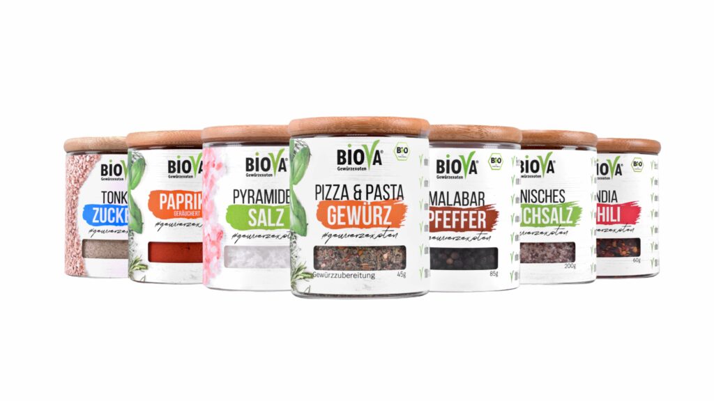 Mit hochwertigen exotischen, naturbelassenen Salzen, Pfeffern, Zuckern, Gewürzen und Chilis hat sich die Marke Biova seit der Gründung des Unternehmens 2003 einen Namen gemacht und das Portfolio an Bio-Produkten stetig ausgebaut. Beliefert werden führende Anbieter von Markengewürzen sowie trendige Newcomer-Brands, die eigene Marke Biova ist auch für Endverbraucher erhältlich.