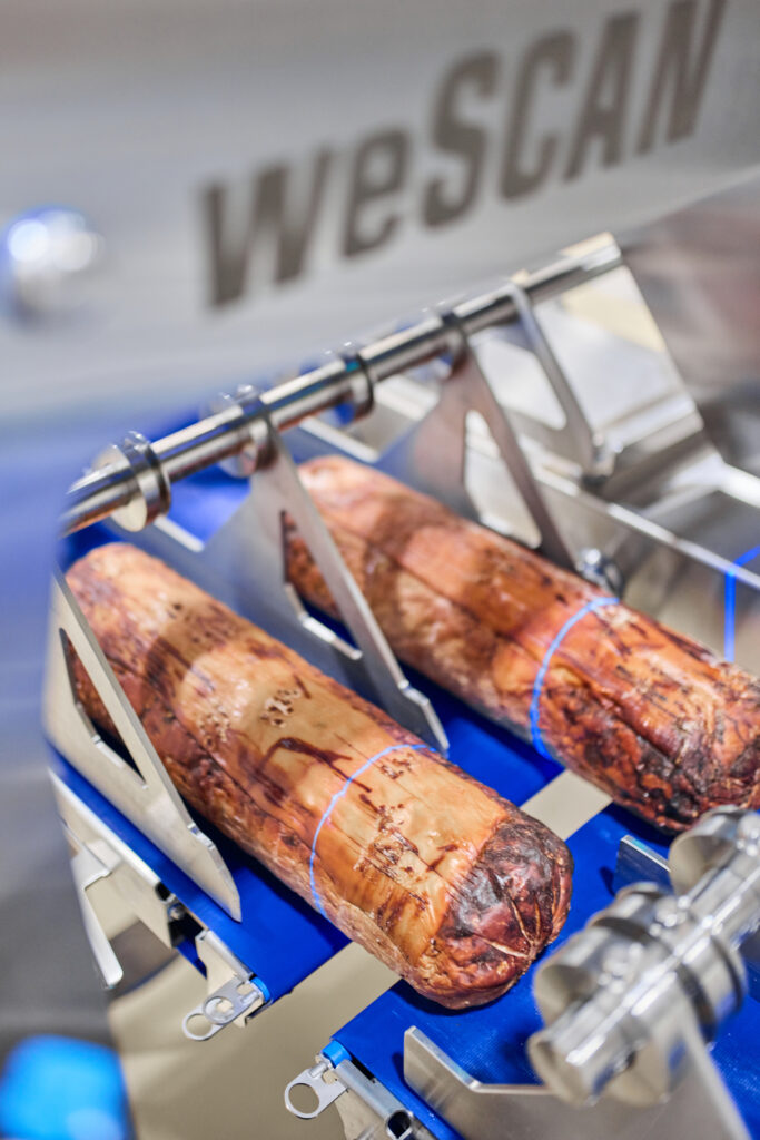 Die neue Weber-Komplettlinie umfasst alle Module vom Scanner bis zum Bandvereinzeler. Los geht es mit dem Weber-Laserscanner WeScan 5000, um bei der großen Vielfalt an verschiedenen Produkten, die bei Schirnhofer verarbeitet werden, immer die optimale Produktnutzung mit höchster Ausbeute und minimalem Give-away zu garantieren.