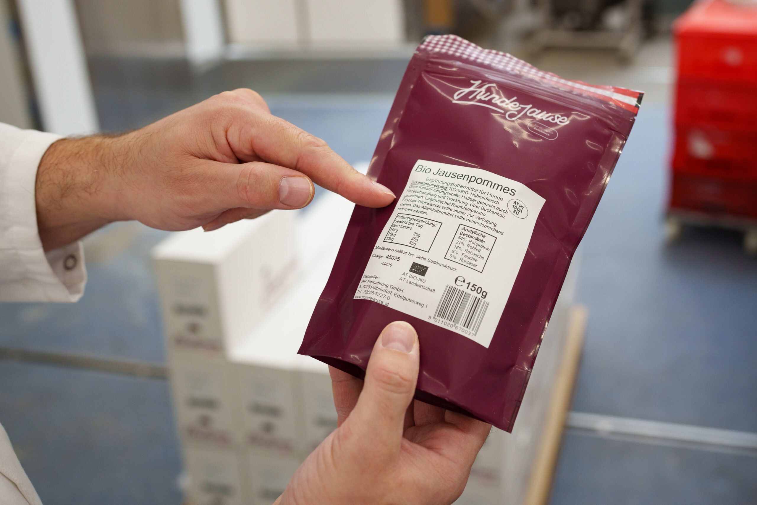 Dazu zählen etwa maschinell entbeintes Fleisch oder Innereien, die optisch nicht perfekt sind – aber ernährungsphysiologisch hochwertig. Der Schwerpunkt liegt auf ungekühlt haltbaren Ergänzungsfuttermitteln – also Snacks und Leckerlis, die aus geformten oder naturbelassenen Stücken bestehen. Daneben produziert WP Tiernahrung kleinere Mengen an BARF-Produkten und Streichwürsten in Tuben.