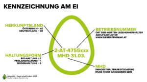 Insgesamt importiert Österreich jährlich rund 690 Millionen Eier, die hierzulande weiterverarbeitet oder verkocht werden. Ob Frischeier oder verarbeitete Ei-Produkte – das macht einen erheblichen Unterschied bei der Kennzeichnung. Lückenlos und vorbildlich kann bei einem in Österreich produzierten, im ganzen gekauften Ei, bis zum Bauern zurückverfolgen.