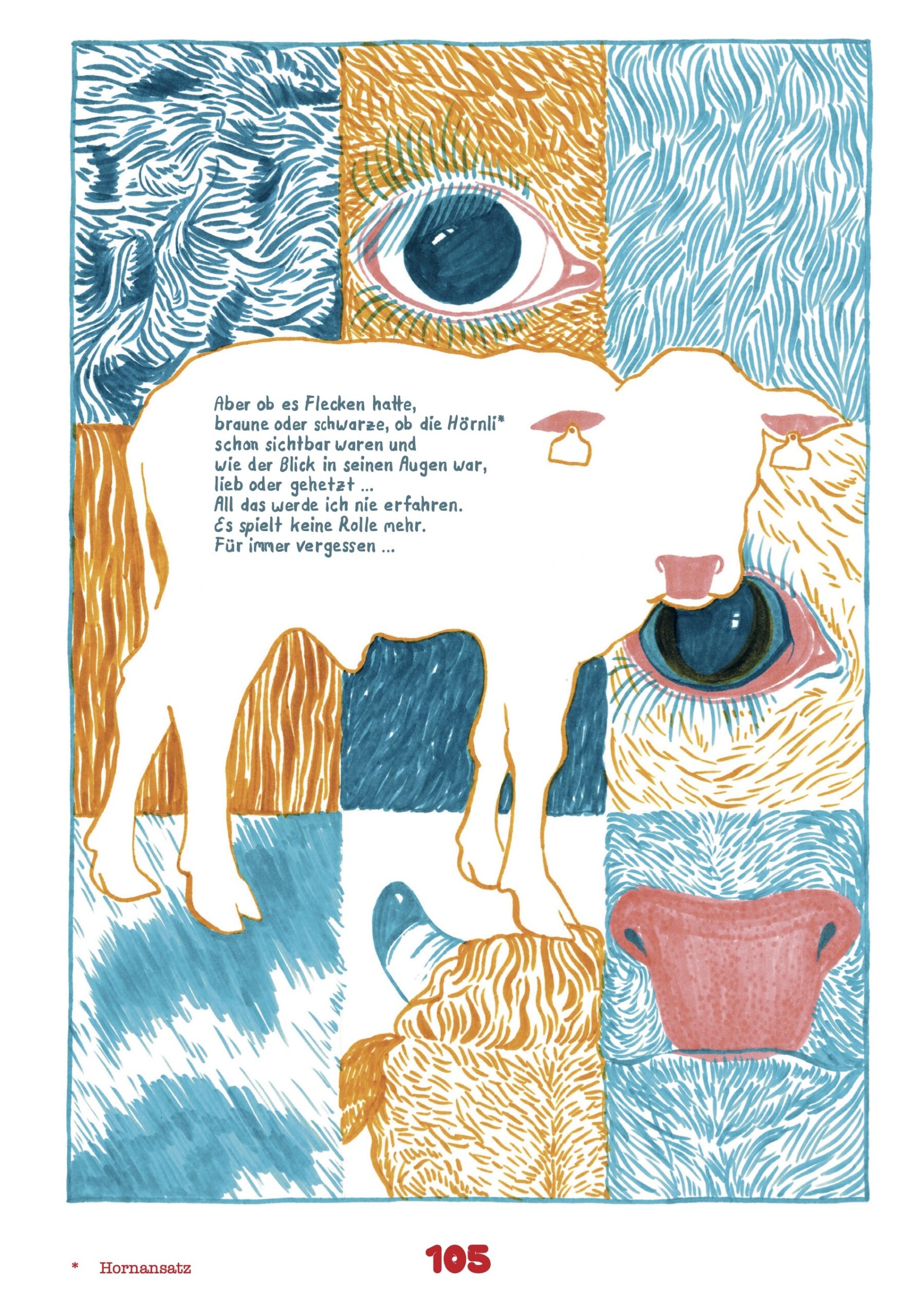 Ja, Metzger Erwin ist in einer Sinnkrise. Echte Argumente hat er wenige, wenn der Biobauer Joni mit ihm diskutieren will. „Das Medium ist perfekt geeignet, um den Fragen und Gedanken Raum zu geben“, sagt Oesch über Comics wertschätzend. „Ich versuchte die Thematik auf eine Ebene zu bringen, die die Leser zum Nachdenken anregt und miteinbezieht.“