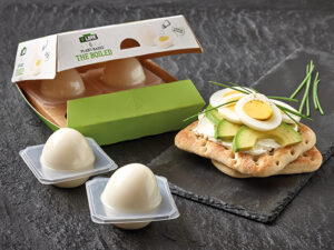 Vegane Eier, also pflanzenbasierten Produkte aus Sojaproteinen, ähneln optisch ihrem tierischen Vorbild – und sind ebenso empfindlich. Das von Sealpac entwickelte innovative Verpackungsformat wurde speziell für die Migros Schweiz hergestellt. Im Tray-Skin®-Verfahren wird jedes Ei einzeln mit dem speziell hierfür entwickelten OnTray-Cut-Konturenschnitt versiegelt – und sorgen dafür, dass hoch empfindliche Produkte bis zum Verzehr rundum gut geschützt sind. Dazu Rico Me?nard, Leiter Verpackungsentwicklung Migros, „Die beste Verpackung, ist diejenige, die einen optimalen Produktschutz und zugleich einen minimalen Einsatz von Verpackungsmaterial bietet.“ „Das trifft exakt den Punkt, d. h. Verpackungslösungen, die auf maximalen Produktschutz abgestimmt sind, bei denen es uns jedoch im Vergleich zu herkömmlichen Lösungen gelungen ist, die Materialauswahl deutlich nachhaltiger zu gestalten“, meint Stefan Dangel.