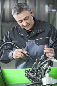 Sicherheit im Betrieb steht mit an erster Stelle, dafür sorgt auch die einwandfreie Nutzung des Teilereinigers. Sichergestellt wird diese durch regelmäßige Wartung. Dazu gehören das Auffüllen der Reinigungsflüssigkeit, der Filterwechsel und der Ersatz von Verschleißteilen. Der MEWA Dienstleistungsverstrag mit praktischem Wartungsservice berücksichtigt das: Im acht- oder vierwöchigen Rhythmus erfolgt die Wartung. Defekte Teile werden meist innerhalb von 24 Stunden ausgetauscht.