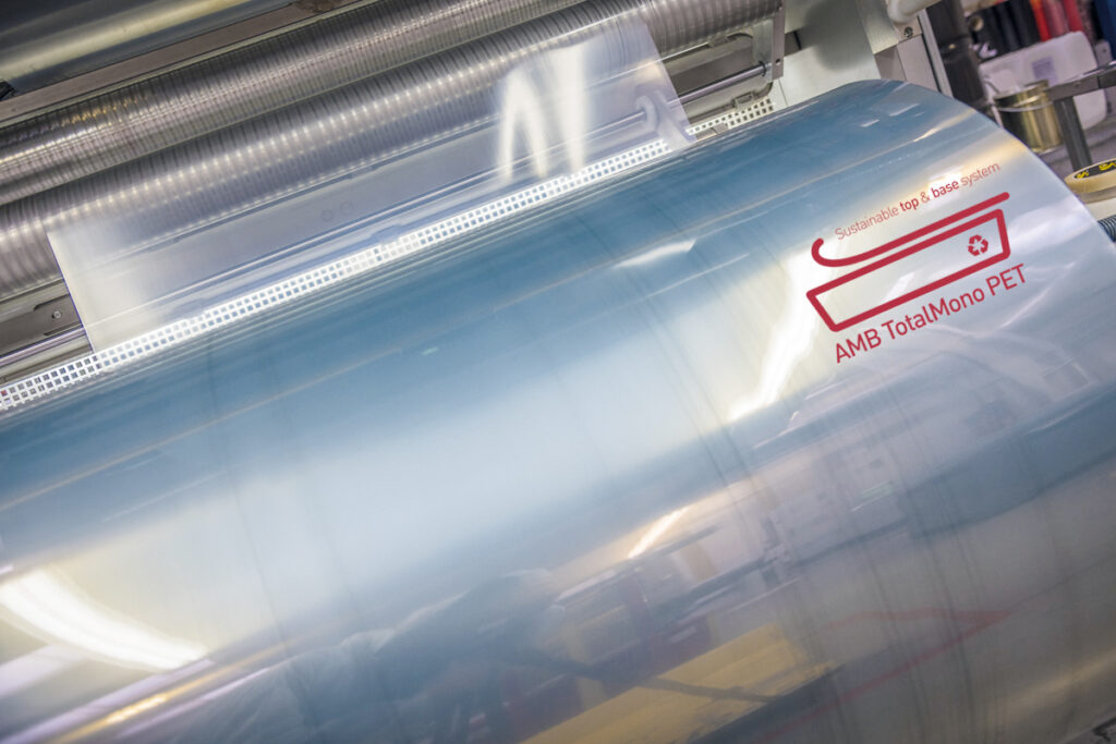 Für AMB ist es nicht nur bei der Entwicklung neuer Lösungen, sondern auch bei der Auswahl der für die Lösung eingesetzten Materialien essentiell wichtig, den Anforderungen europäischer und internationaler Recycling-Vorschriften zu entsprechen. Ein Beispiel hierfür ist AMBs BOPET-Deckelfolie, die mit einem variablen Anteil an recyceltem Post-Consumer-PET – zwischen 37% und 60% – produziert wird. Bei Unterfolien aus rPET werden in Abhängigkeit von den Kundenwünschen – 50% bis 100% – Post-Consumer-Materialien verwendet. Dies zeigt, wie effektiv das Unternehmen den ökologischen Fußabdruck minimiert und eine geschlossene Kreislaufwirtschaft fördert.