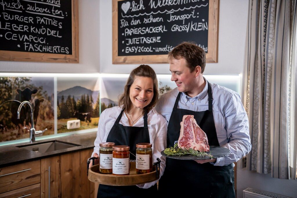 Und um das gute Fleisch auch an die Kund:innen zu bringen, starteten die innovativen Niederösterreicher vor gut zwei Jahren eine Direktvermarktung ihrer Produkte. Man muss das Fleisch einfach vorbestellen und kann dann im Frühling und im Herbst, an bestimmten Verkaufstagen, die Bestellung direkt ab Hof abholen. Und der Besuch auf dem wunderschönen Vierkanthof lohnt sich unbedingt – der schöne Hofladen ist ganz in der Nähe der Ställe in denen man die zufriedenen Rinder besuchen darf. An diesen sog. „Ab-Hof-Tagen” wird natürlich auch für das leibliche Wohl der Gäste gesorgt und so ist der Besuch ein naturnahes Erlebnis für die gesamte Familie. Und der nächste „Ab-Hof-Tag” ist schon am 11. März! Also gilt es, jetzt ganz schnell das Fleisch zu bestellen und den Frühlings-Ausflug planen!