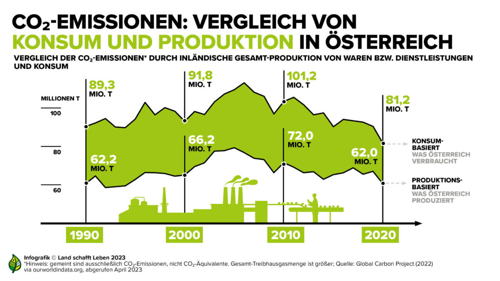 Infografik-Klima:CO2-Emissionen im Vergleich, Konsum und Produktion in Österreich