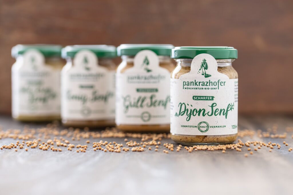 Eva und Norbert Eder, Landwirte aus Tragwein, produzieren mit ihrer Pankrazhofer GmbH Most, Säfte und Senf in Bio-Qualität. Letzterer wird im Glas verkauft. Sie wollten wissen, ob diese Verpackungsart auch wirklich die nachhaltigste ist oder ob es Alternativen gibt, die geringere Auswirkungen auf die Umwelt haben. Es kristallisierte sich ein recyclingfähiger Standbeutel aus Polypropylen (PP) mit PP-Verschluss und hoher Sauerstoffbarriere als geeignetste Lösung heraus.