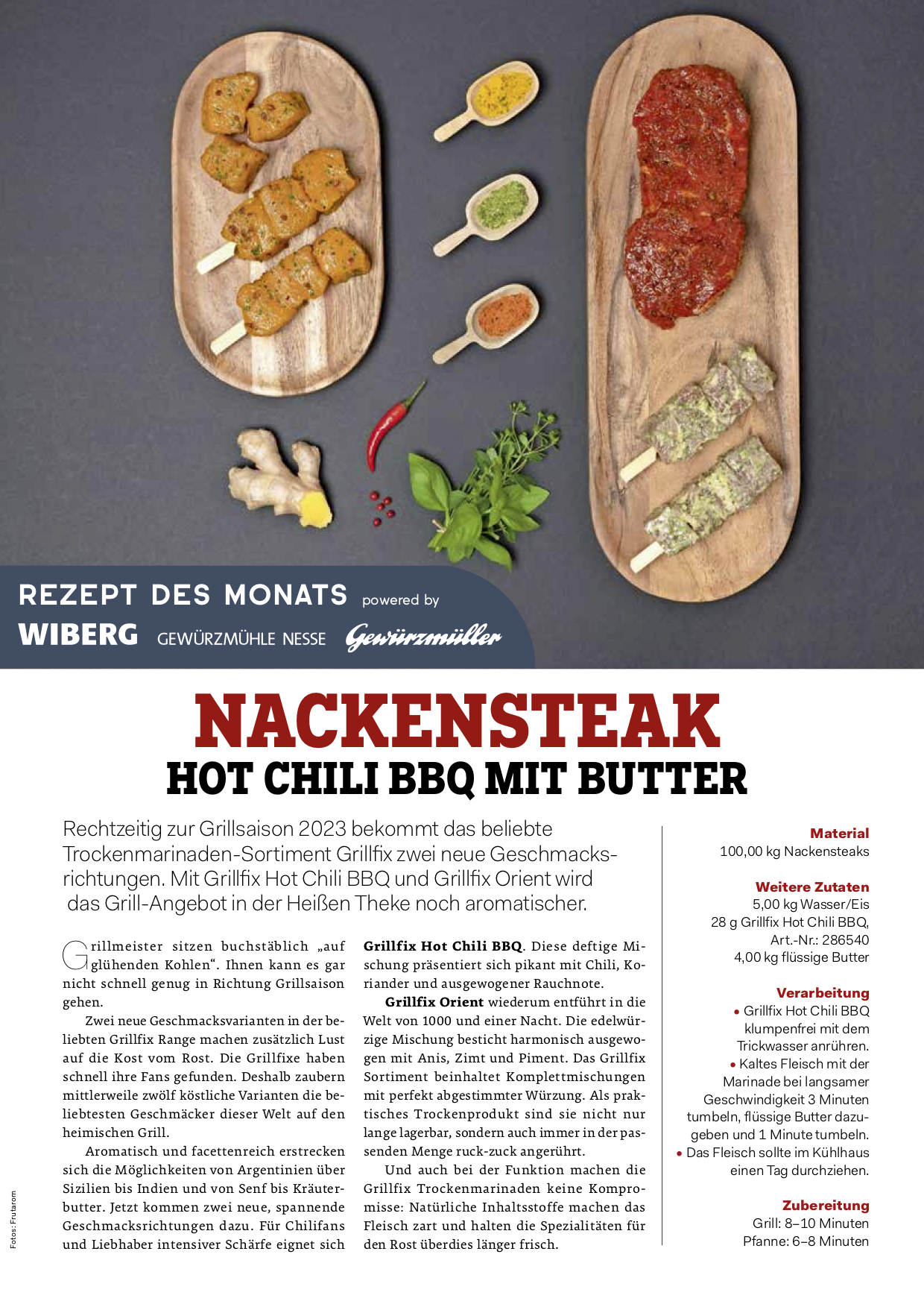 Rechtzeitig zur Grillsaison 2023 bekommt das beliebte Trockenmarinaden-Sortiment Grillfix zwei neue Geschmacksrichtungen. Mit Grillfix Hot Chili BBQ und Grillfix Orient wird das Grill-Angebot in der Heißen Theke noch aromatischer.