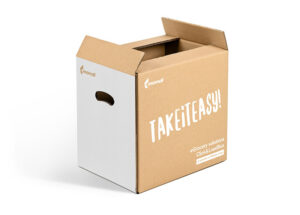 Click&CarryBox(© Mondi) – für schwerere, gemischte Bestellungen. Bietet Festigkeit und Stabilität. Ein integrierter Griff erleichtert das Tragen.