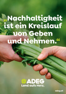 Die aktuelle ADEG Kampagne greift die achtsame Handlungsweise der ADEG Kaufleute auf, welche die ökologischen, sozialen und wirtschaftlichen Aspekte einschließt. In einer 360°- Werbekampagne dreht sich alles um das Thema Nachhaltigkeit.