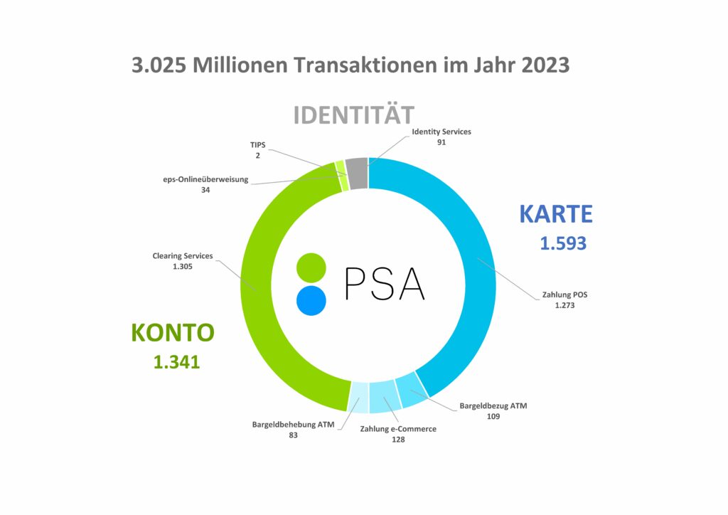 Neben den Karten-Transaktionen verzeichnete PSA auch eine hohe Anzahl an Konto-zu-Konto-Transaktionen mit über 1,3 Milliarden. Darunter fielen 1,3 Milliarden Clearing Service Transaktionen, 34,4 Millionen eps-Onlineüberweisungen und 2,3 Millionen TIPS-Transaktionen (Echtzeitüberweisungen). Zudem wurden 2023 beachtliche 90 Millionen Identity Services-Transaktionen (Altersabfragen) durchgeführt.