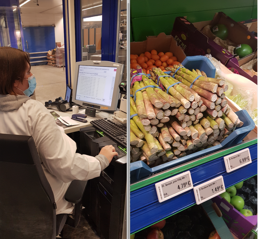 Da die meisten Kunden am liebsten telefonisch ordern, erstellt das Verkaufsteam schon während des Gesprächs die Kundenaufträge im System. Hilfreich ist dabei, dass für jeden Kunden die von ihm gekauften Artikel der vergangenen 100 Tage automatisch eingeblendet werden. Zeitgleich landen die Bestellungen bei den zehn Kommissionierern im Markt, die täglich rund 100 Aufträge bearbeiten. Sie rufen sich die Bestellungen auf Tablets auf und stellen die Produkte auf Rollwagen im Großmarkt zusammen. Die Tablets sind über WLAN ans Netzwerk angeschlossen und erlauben es dem Benutzer, Waren für bestellte Aufträge zügig im gesamten Markt zusammenzusuchen. Über einen Fingerscanner werden die Artikel gescannt, um identifiziert und automatisch dem aufgerufenen Beleg zugeordnet zu werden.